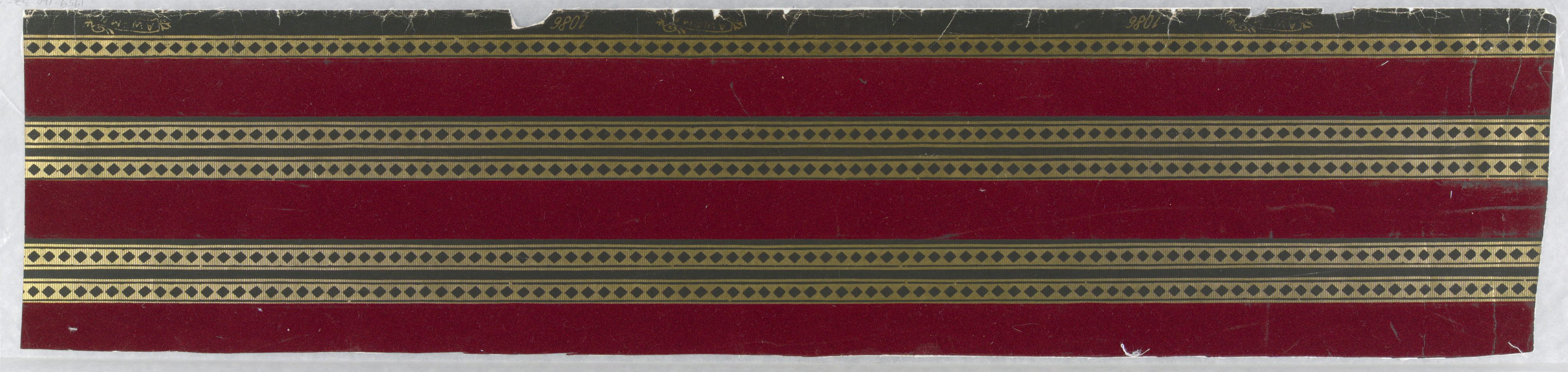Sidewall (USA); Made by American Wall Paper Manufacturers' Association (United States); machine-printed, gauffre, gilt, flock; 85 x 20 cm (33 7/16 x 7 7/8 in.); Gift of Josephine Howell, Inc.; 1959-160-32-a/c