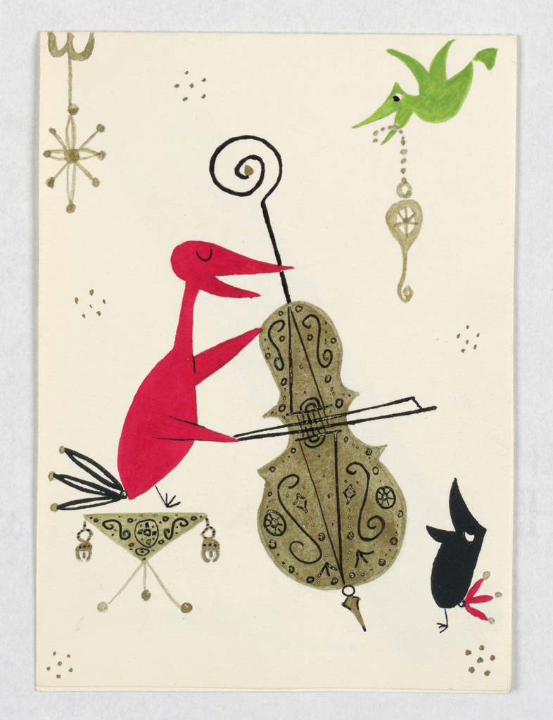 Christmas Card, Singing Birds with Cello; lithograph on paper; Gift of Anonymous Donor; 1959-27-1-g