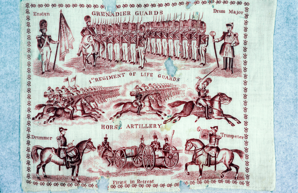 This is a Handkerchief. It is dated early 19th century and we acquired it in 1959. Its medium is cotton and its technique is printed. It is a part of the Textiles department.