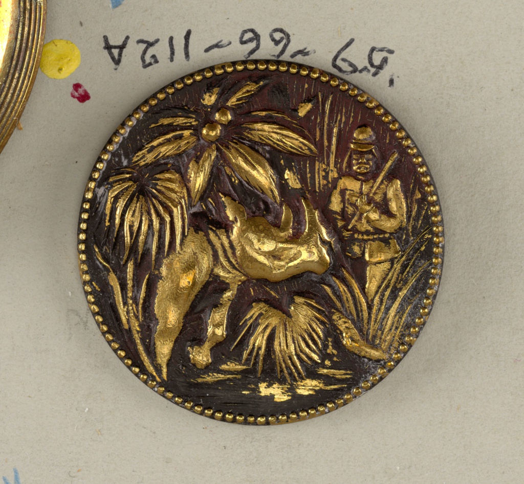 This is a Button. We acquired it in 1959. Its medium is brass. It is a part of the Product Design and Decorative Arts department.