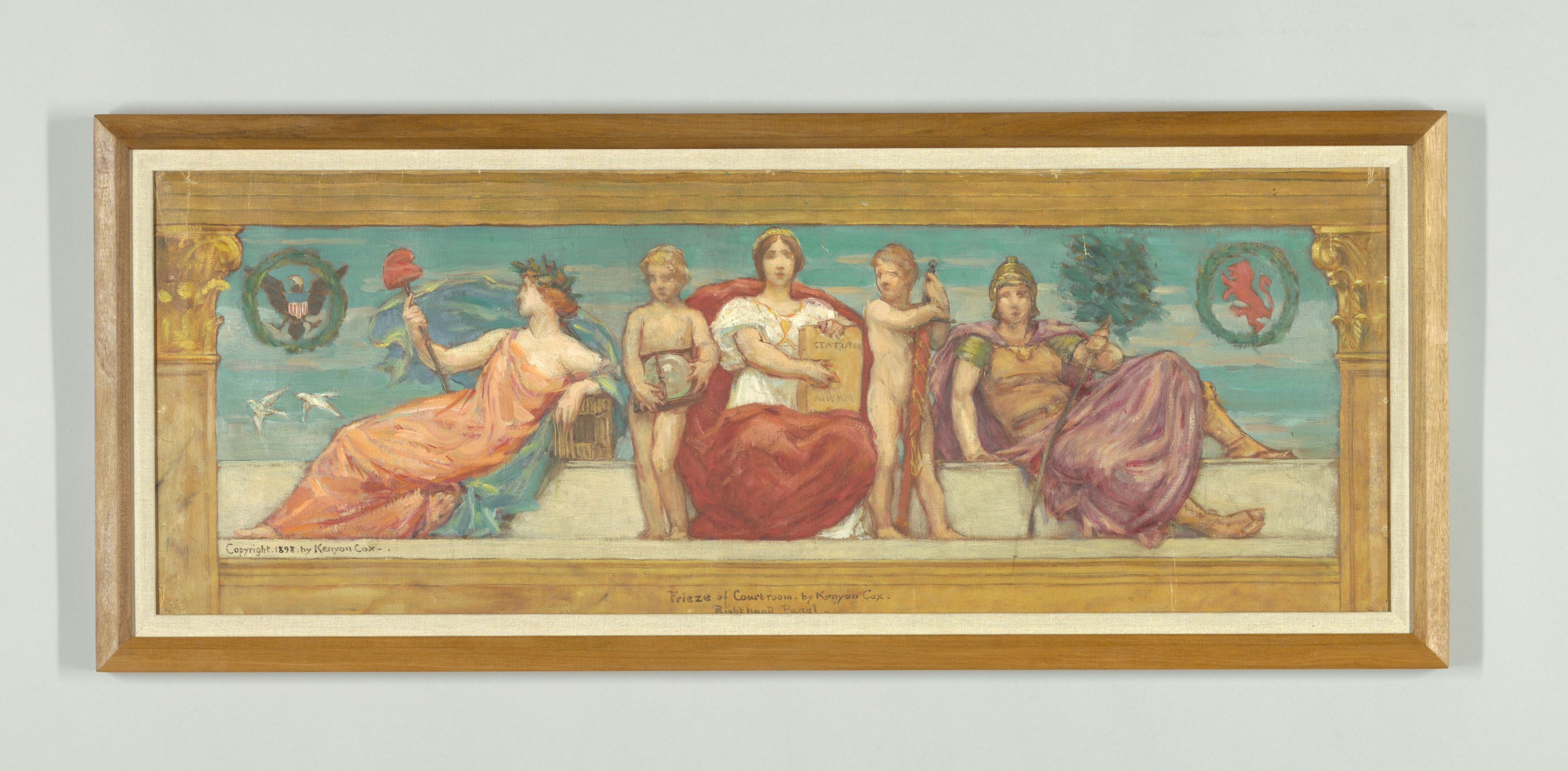 This is a Painting. It was created by Kenyon Cox. It is dated 1898 and we acquired it in 1959. Its medium is brush and oil, pen and red ink on canvas. It is a part of the Drawings, Prints, and Graphic Design department.