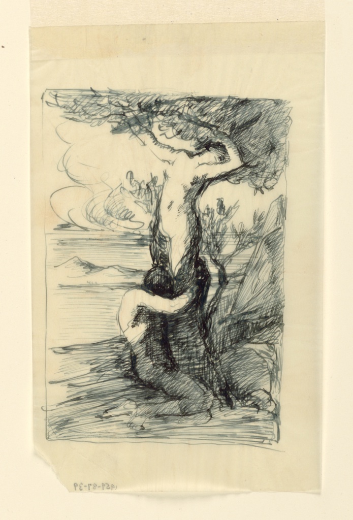 Drawing, Study for "Apollo and Daphne"; Robert Ingersoll Aitken (American, 1878–1949); USA; pen and dark blue ink on tracing paper; 21 × 13.1 cm (8 1/4 × 5 3/16 in.); Gift of Mrs. Robert I. Aitken; 1959-87-39