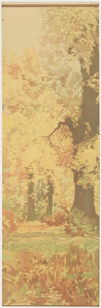 Scenic - Panel, Autumn; Manufactured by The Schmitz-Horning Co.; USA; chromo-lithograph; 155.5 x 49.5 cm (61 1/4 x 19 1/2 in.); Gift of Wallpaper Council, Inc.; 1960-163-46