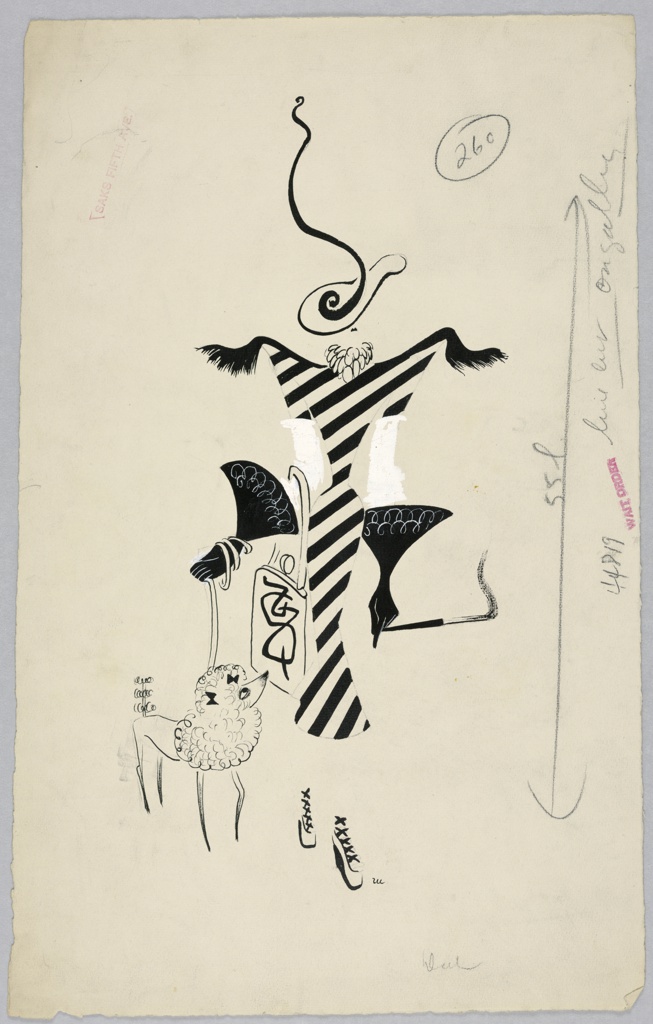 This is a Drawing. It was created by Christina Malman and made for (as the client) Saks Fifth Avenue, New York, NY. It is dated 1945–48 and we acquired it in 1960. Its medium is pen and ink, brush and ink, white gouache, graphite on cream paper. It is a part of the Drawings, Prints, and Graphic Design department.