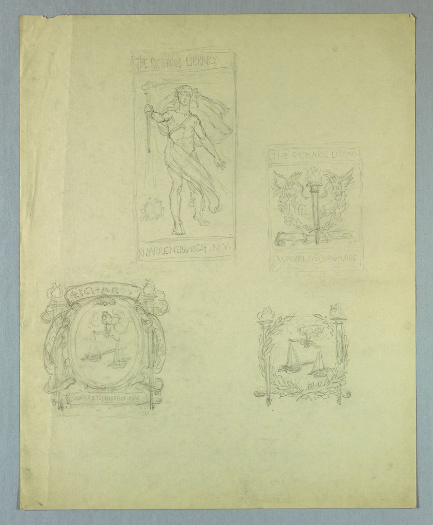 Drawing, Four Sketches for Seal of The Richards Library, Warrensburg, N.Y.