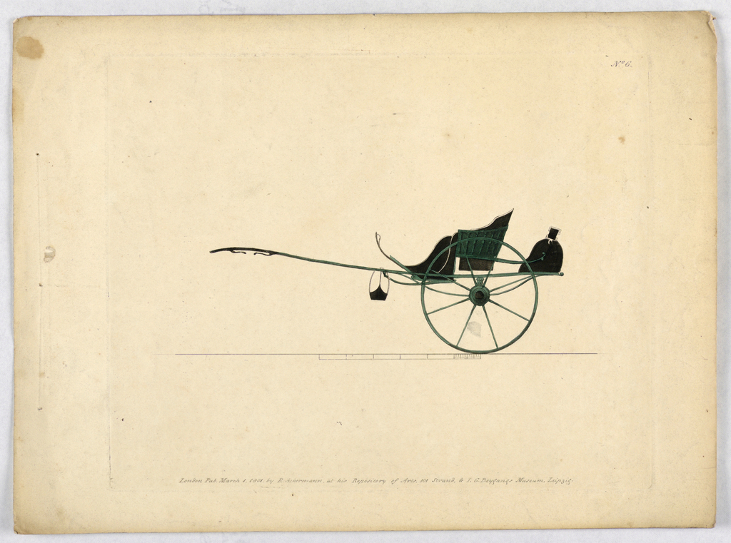 Print, Carriage; Published by R.Ackermann & I.G.Beygangs; France; engraving, brush and watercolor on paper; 20 × 25 cm (7 7/8 × 9 13/16 in.); Gift of Hamill and Barker; 1961-105-361