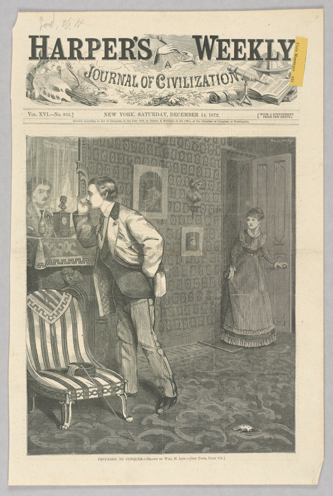 Print, Prepared to Conquer, Illustration for Harper's Weekly (XVI, December 14, 1872, cover); After Will Hicox Low (1853 – 1932); Published by Harper's Weekly; USA; wood engraving in black ink on paper; 1961-79-8