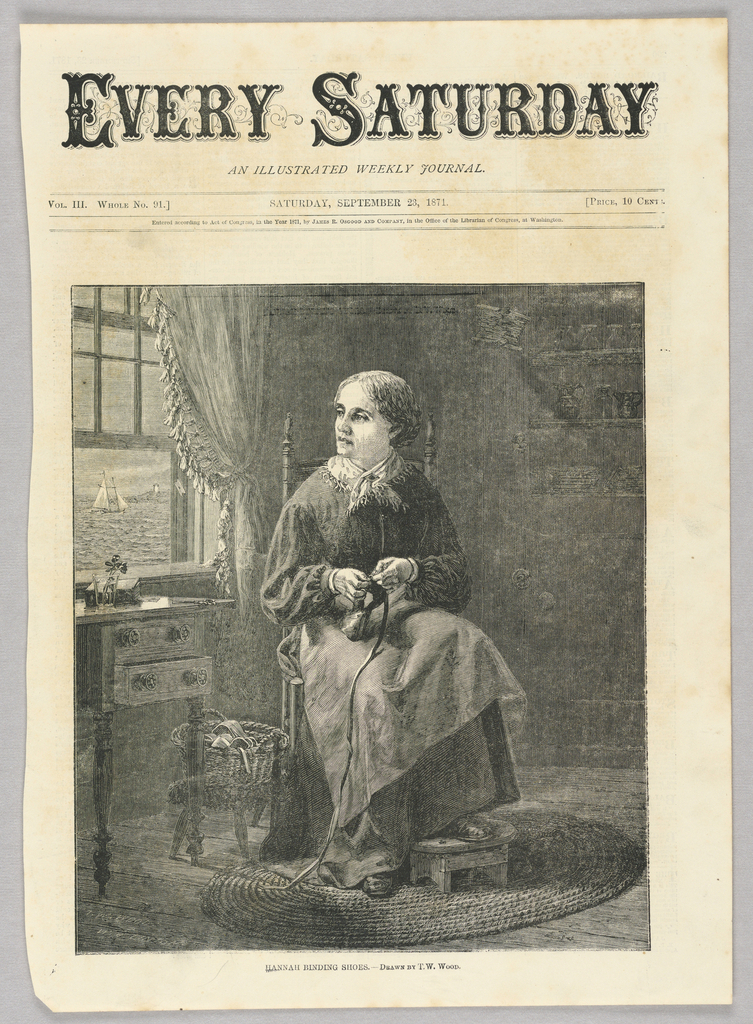 Print, Hannah Binding Shoes, Illustration for Every Saturday (III, September 23, 1871, cover)