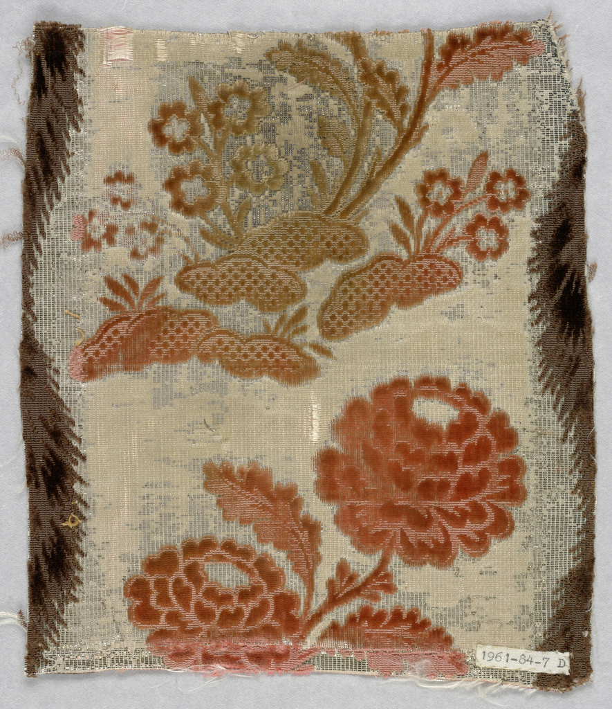 This is a Fragments. We acquired it in 1961. Its medium is velvet. It is a part of the Textiles department.