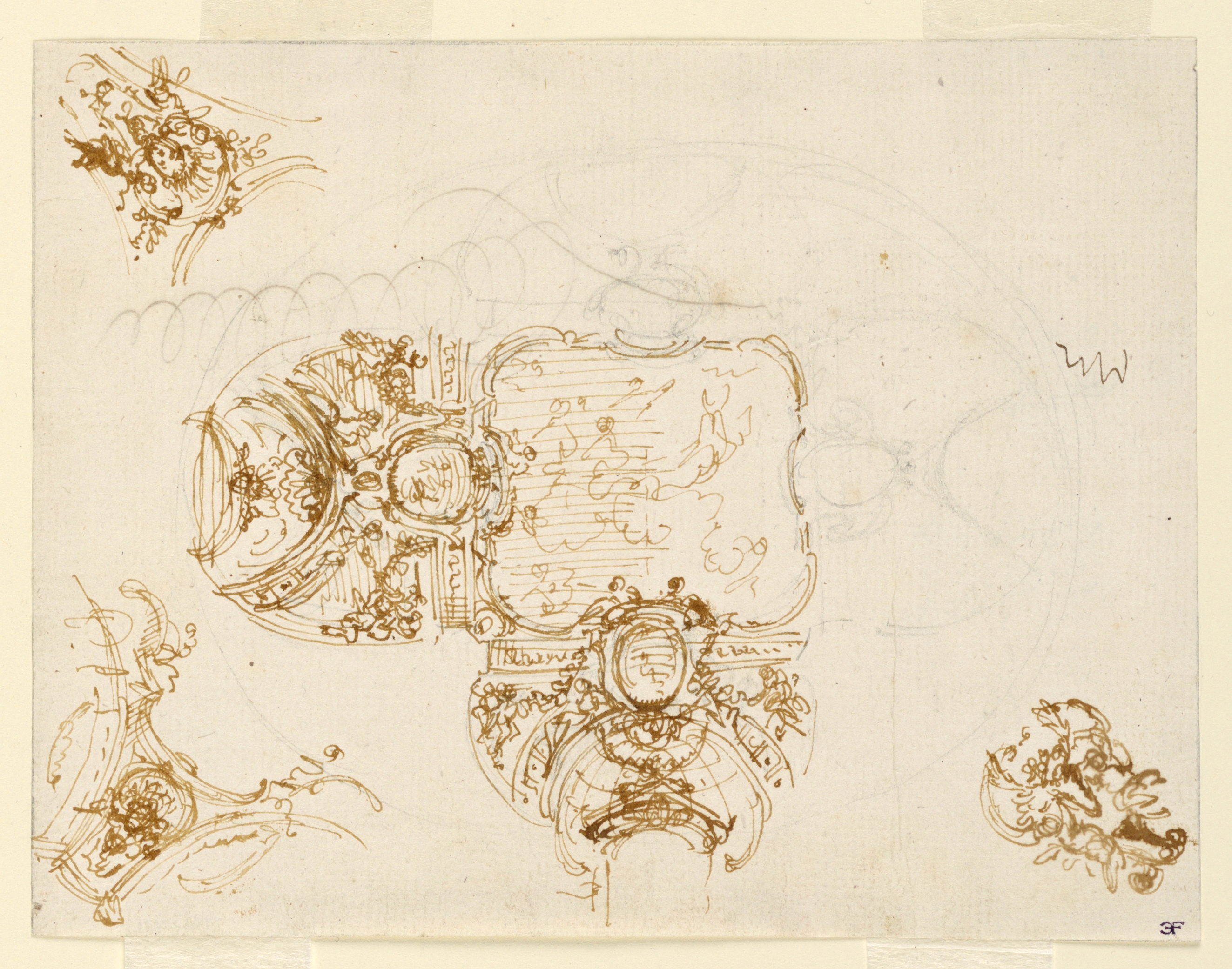 Drawing, Ceiling Design for the Salone di Stupinigi (Main Hall of the Hunting Lodge); Filippo Juvarra (Italian, 1678 - 1736); Italy; graphite, pen and brown ink on off-white turin paper; 16.2 x 21 cm (6 3/8 x 8 1/4 in.); Gift of Peter Josten; 1961-9-1