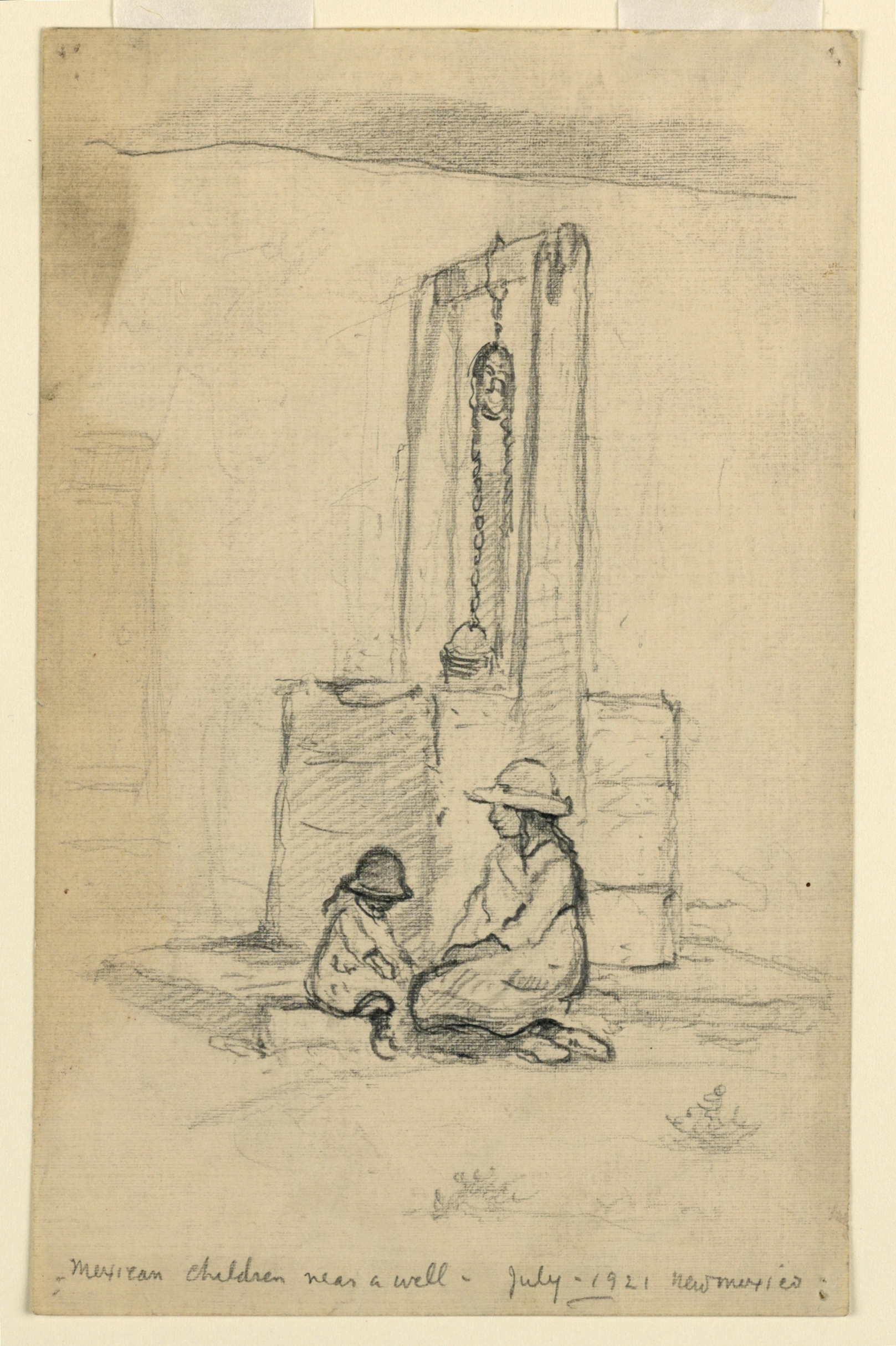 Inscribed in graphite, below: Mexican children near a well - July - 1921 New Mexico