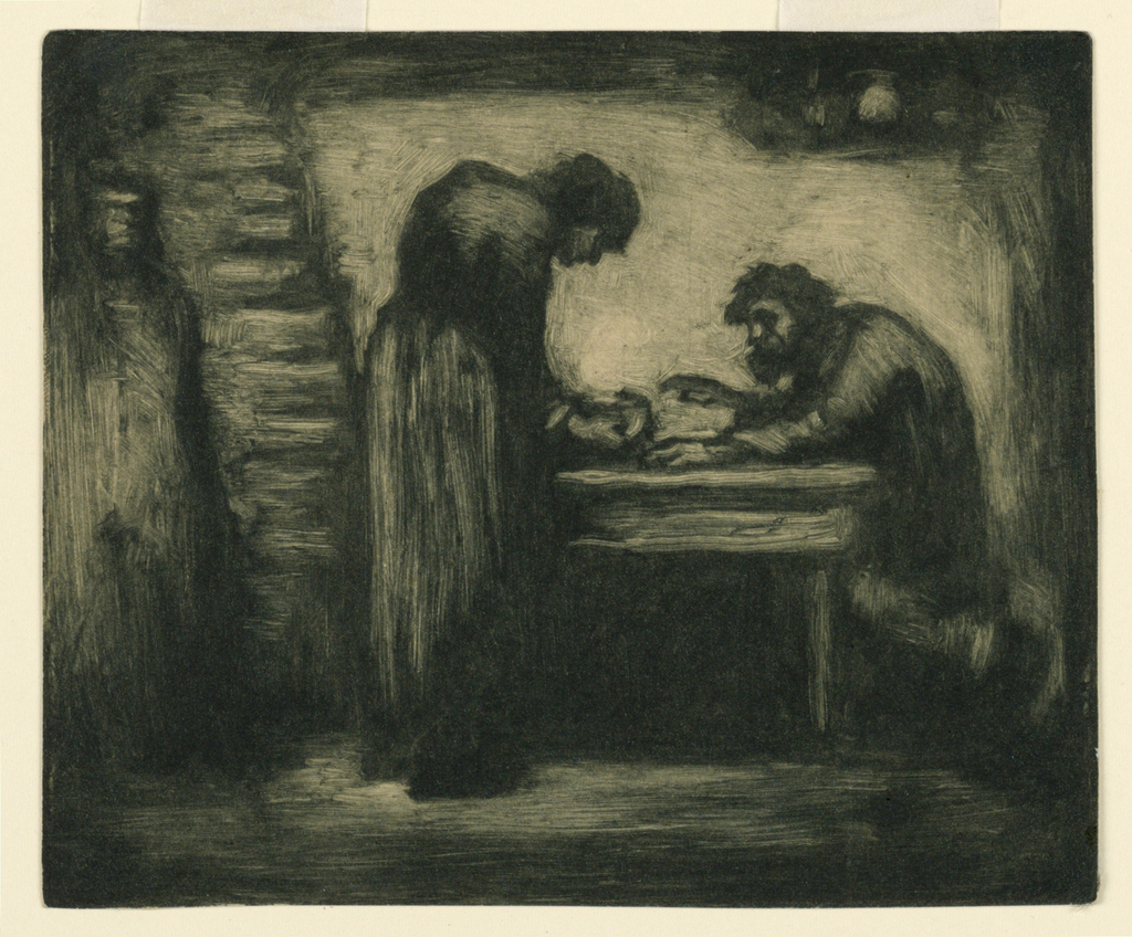 Print, Couple at Supper; Eugene Higgins (1874 – 1958); USA; monotype in dark green ink on wove paper; 12.3 × 15.1 cm (4 13/16 × 5 15/16 in.); Gift of Mrs. Alpheus Cole; 1962-136-34