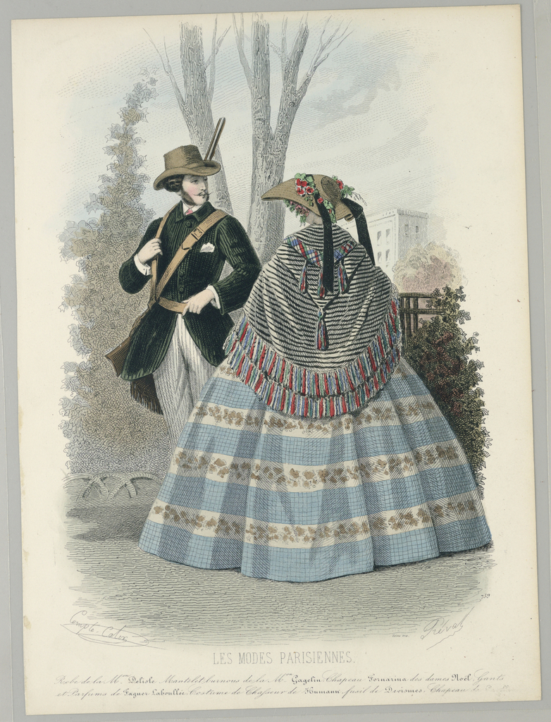 This is a Print. It was print maker: E. Préval and after François-Claudius Compte-Calix and printed by Rossin and published by Les Modes Parisiennes. It is dated 1857 and we acquired it in 1962. Its medium is engraving, brush and watercolor on paper. It is a part of the Drawings, Prints, and Graphic Design department.