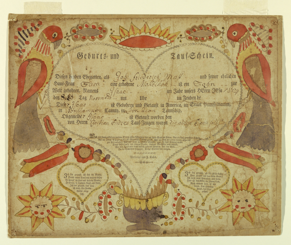Calligraphy, Fraktur taufschein (Birth Certificate)