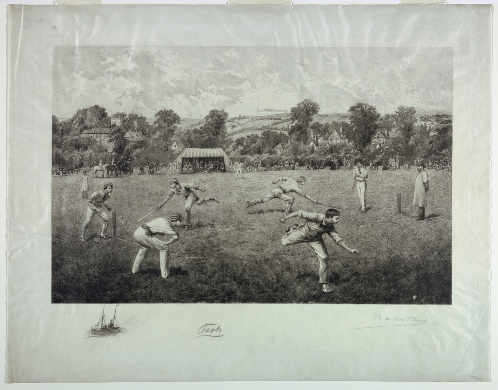 Print, Cricket Game; Print Maker: Ricardo de los Ríos (Spanish, 1847 - 1929); engraving on vellum; 50 × 64 cm (19 11/16 × 25 3/16 in.); Gift of Hamill and Barker; 1962-143-96