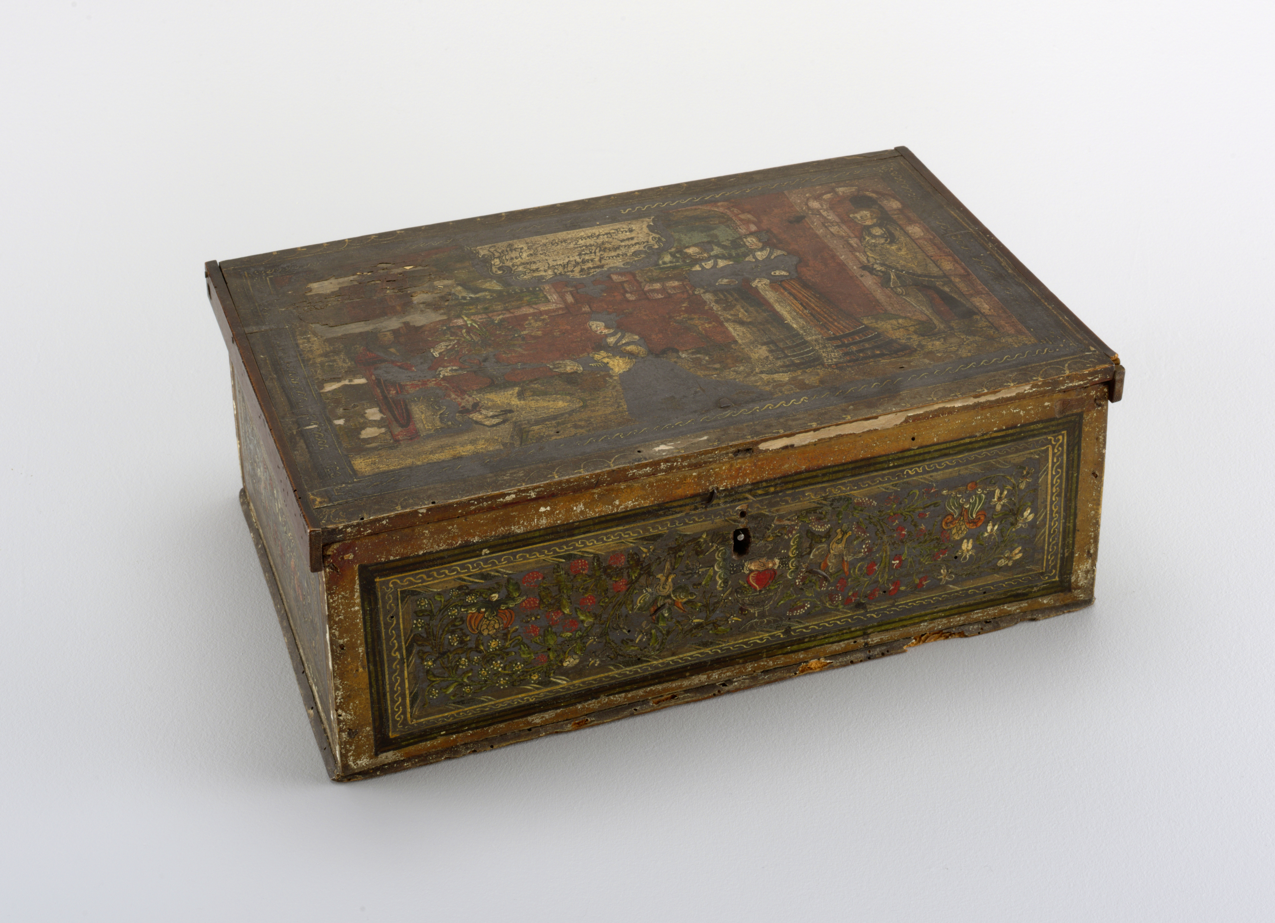 This is a Box. It is dated late 16th–early 17th century and we acquired it in 1962. Its medium is wood, painted. It is a part of the Product Design and Decorative Arts department.