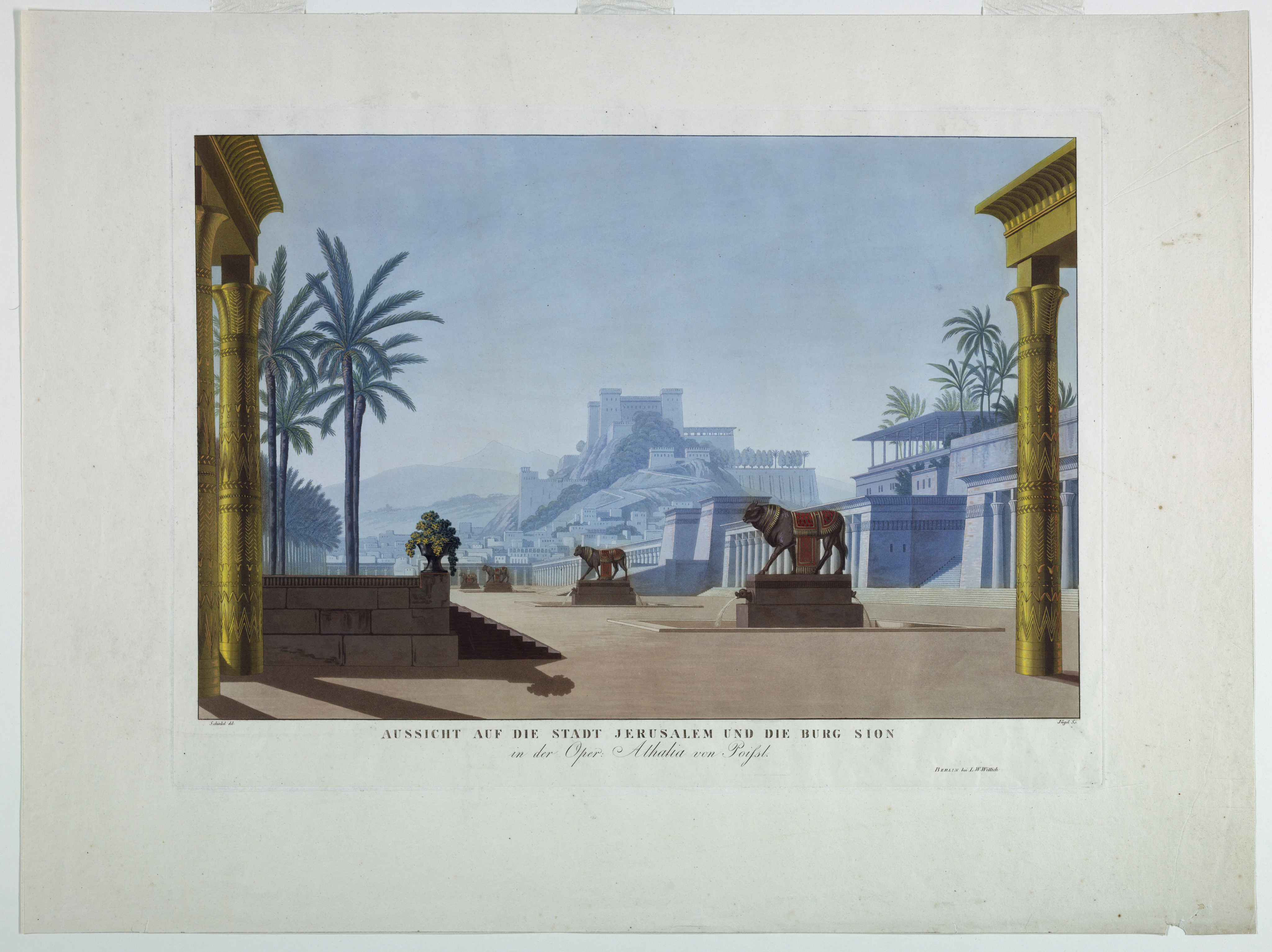 <ref name=CH>{{cite web |url=https://www-5.collection.cooperhewitt.org/objects/18443403/ |title=Print, Stage Design: Jerusalem and Mount Zion, for Athalia |author=Cooper Hewitt, Smithsonian Design Museum |accessdate=20 December 2025 |publisher=Smithsonian Institution}}</ref>