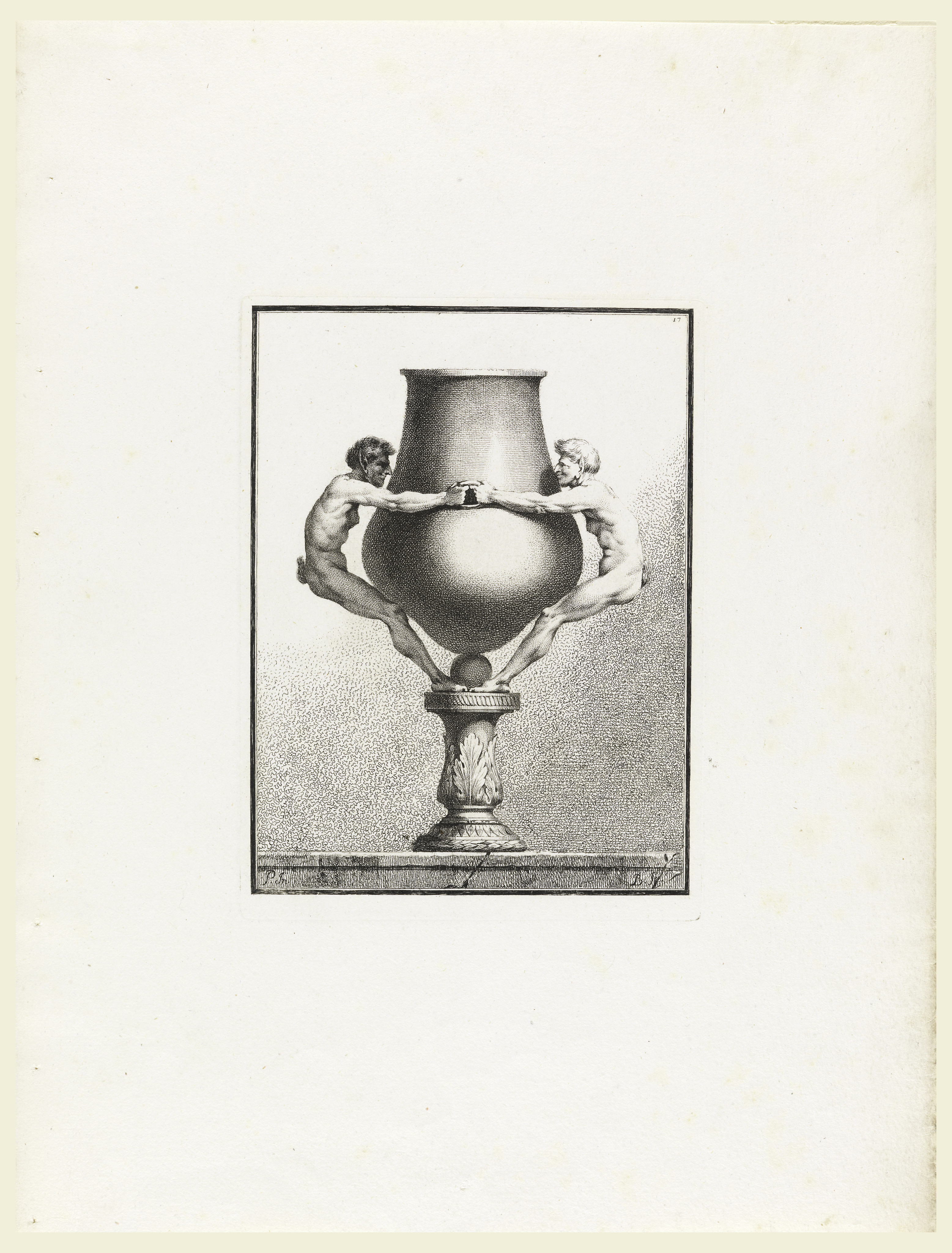 Print, Plate 17, "Suite of Vases"; After Eurimond-Alexandre Petitot (Parma, 1727–1801); Etched by Benigno Bossi (Parma, 1727–ca. 1793); Italy; etching on white paper; Platemark: 21.9 x 16.3 cm (8 5/8 x 6 7/16 in.); 1962-208-13