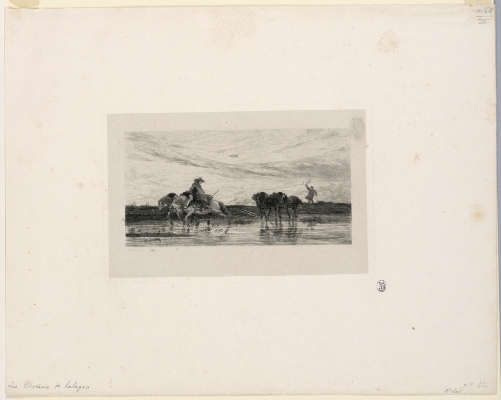 Inscribed in graphite, lower left corner: Les Chevaux de halage; lower left corner: 2 etat / no 62