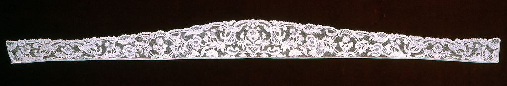 This is a Sleeve ruffle. It is dated early 18th century and we acquired it in 1962. Its medium is linen and its technique is needle lace with 6 sided reworked ground. It is a part of the Textiles department.