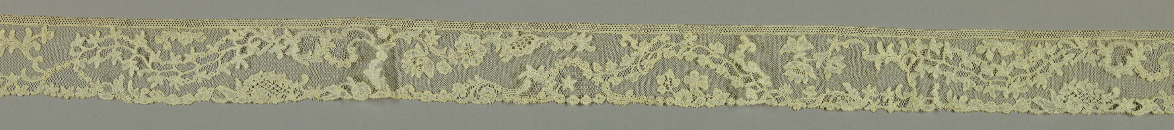 This is a Border. It is dated 1750–1800 and we acquired it in 1962. Its medium is linen and its technique is bobbin lace, brussels style. It is a part of the Textiles department.