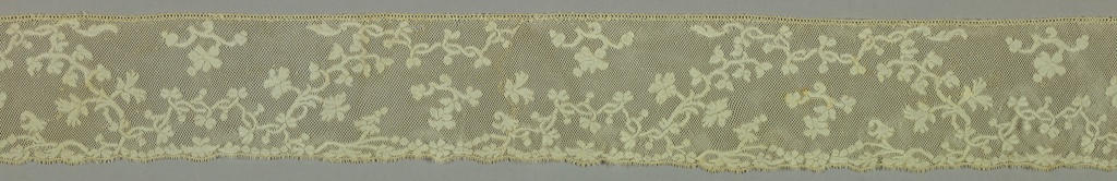 This is a Border. It is dated mid-18th century and we acquired it in 1962. Its medium is linen, cotton and its technique is bobbin lace, valencienne ground. It is a part of the Textiles department.
