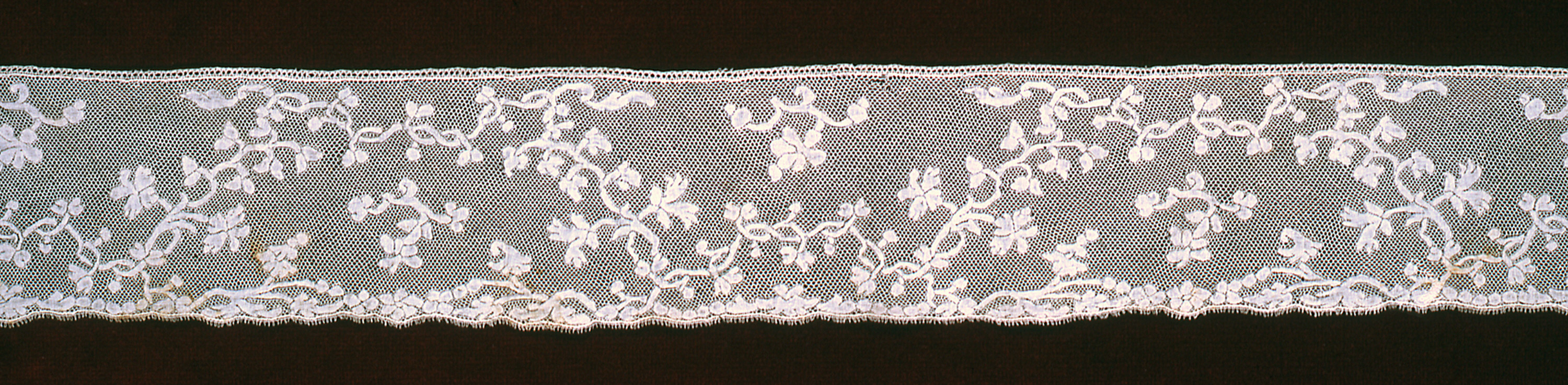 This is a Border. It is dated mid-18th century and we acquired it in 1962. Its medium is linen, cotton and its technique is bobbin lace, valencienne ground. It is a part of the Textiles department.