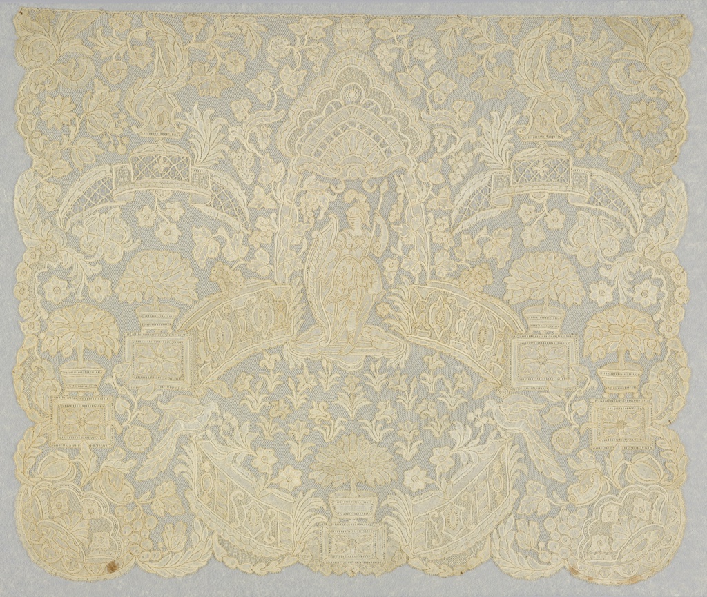 This is a Cravat end. It is dated mid-18th century and we acquired it in 1962. Its medium is linen and its technique is bobbin lace, brussels style. It is a part of the Textiles department.