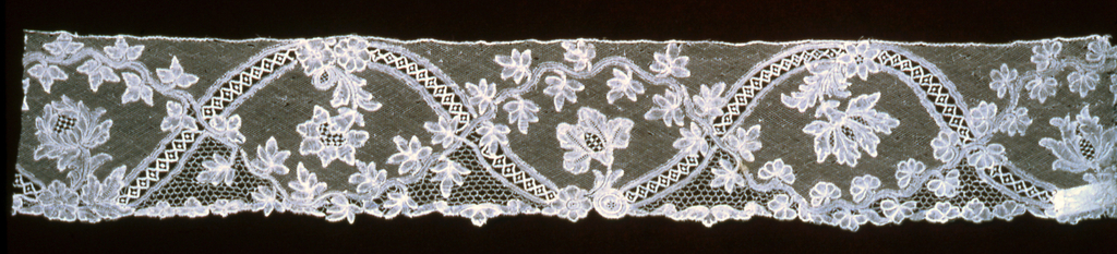 This is a Border. It is dated 1750–99 and we acquired it in 1962. Its medium is linen and its technique is bobbin lace, brussels style. It is a part of the Textiles department.