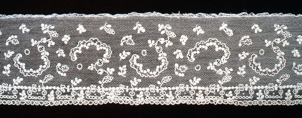 This is a Border. It is dated late 18th–early 19th century and we acquired it in 1962. Its medium is linen and its technique is needle lace, late 17th to early 19th c. It is a part of the Textiles department.