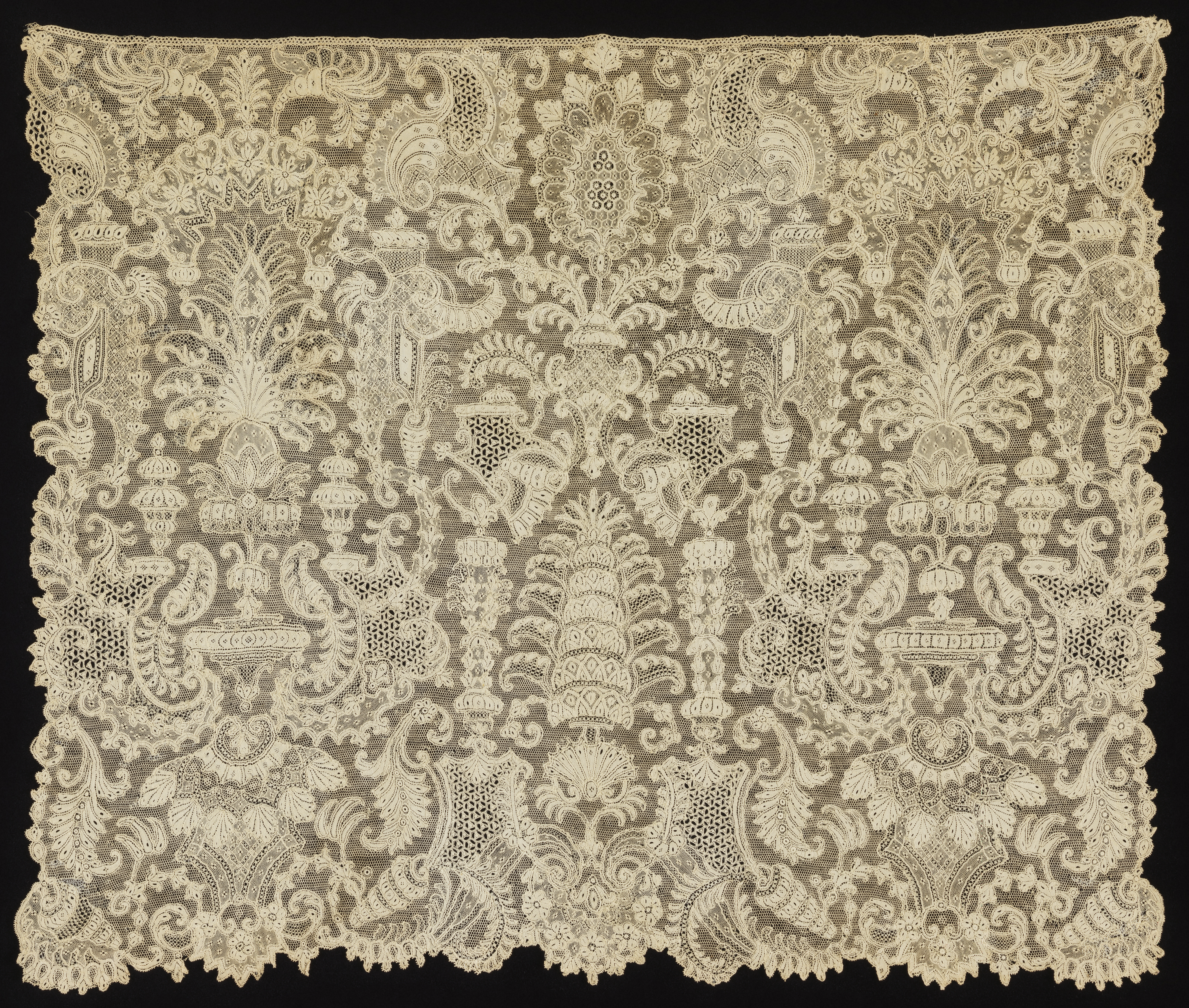 This is a Cravat end. It is dated early 18th century and we acquired it in 1962. Its medium is linen and its technique is needle lace with ground of loop and twist with twist return. It is a part of the Textiles department.
