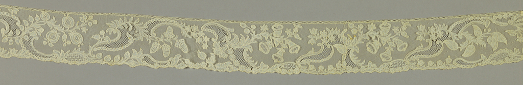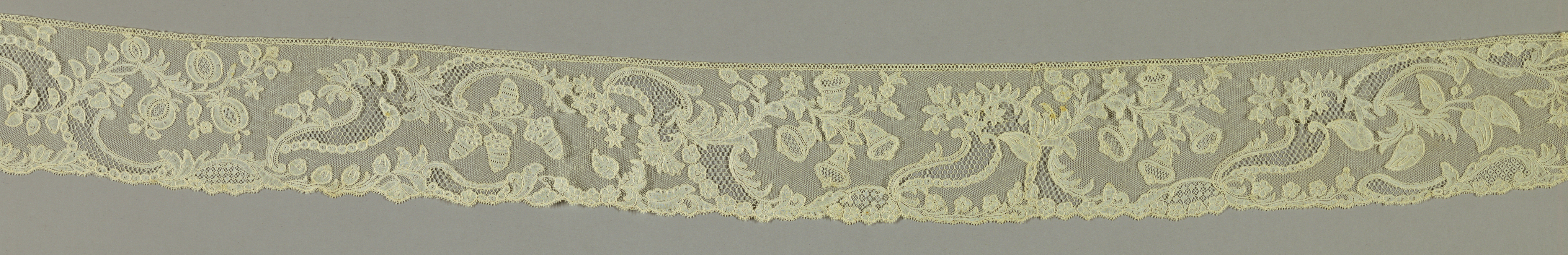 This is a Border. It is dated 1700–1750 and we acquired it in 1962. Its medium is linen and its technique is bobbin lace, brussels style. It is a part of the Textiles department.