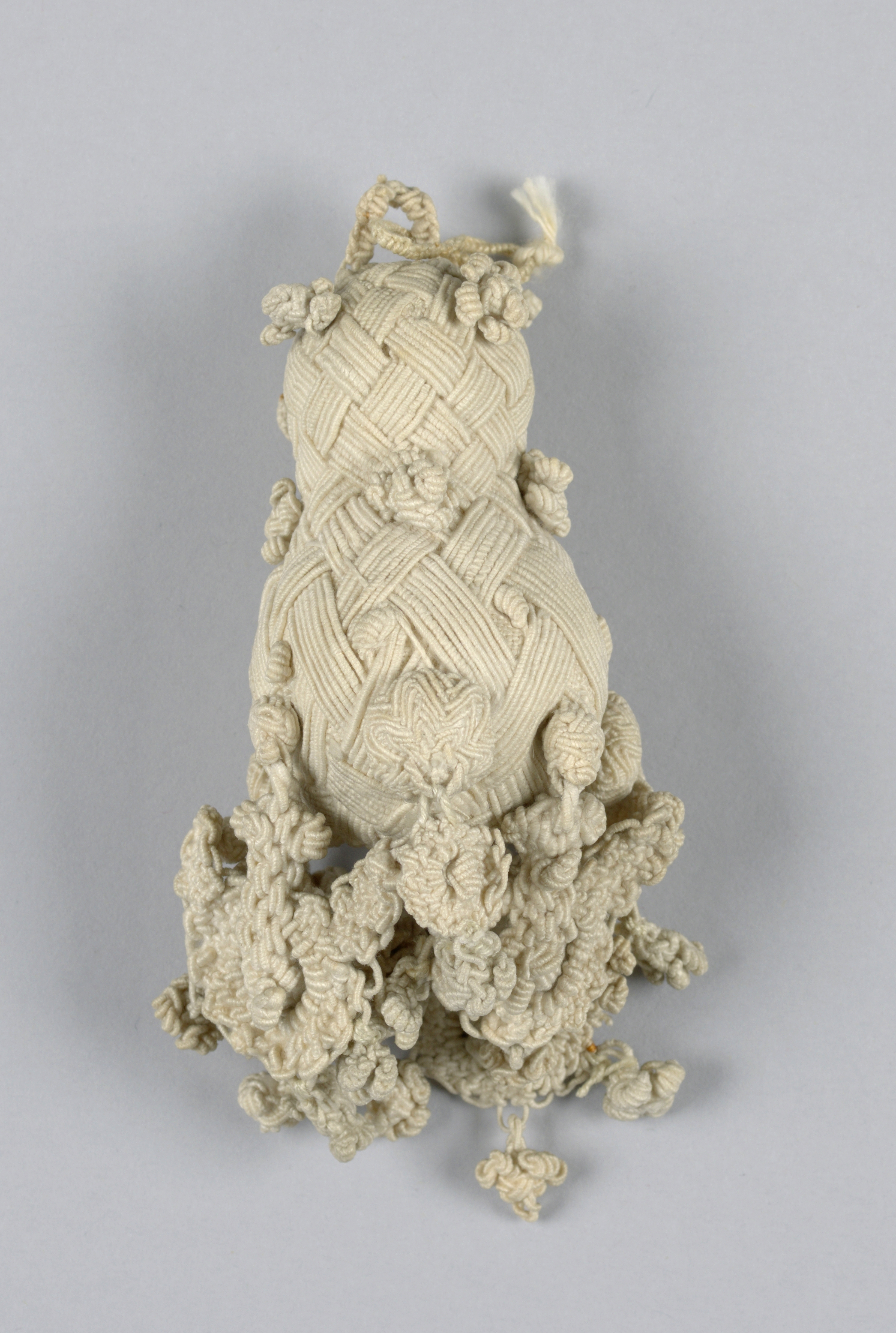 This is a Tassel. It is dated 17th century and we acquired it in 1962. Its medium is linen and its technique is braided and knotted. It is a part of the Textiles department.