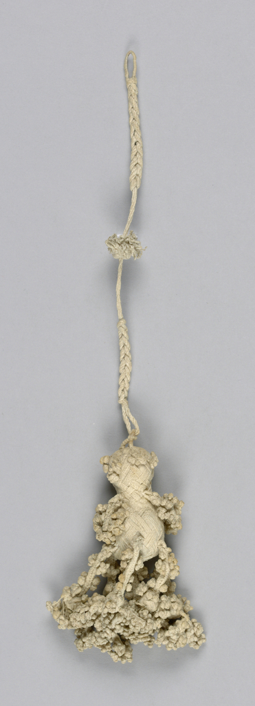This is a Tassel. It is dated 17th century and we acquired it in 1962. Its medium is linen and its technique is braided and knotted. It is a part of the Textiles department.