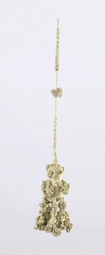 This is a Tassel. It is dated 17th century and we acquired it in 1962. Its medium is linen and its technique is braided and knotted. It is a part of the Textiles department.