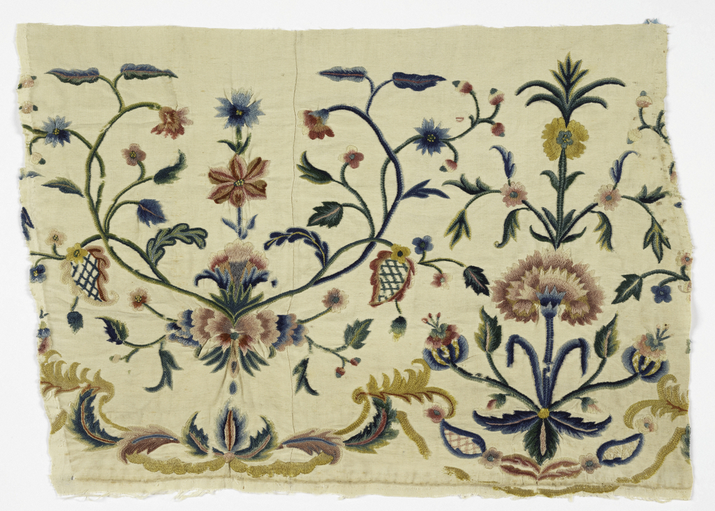 This is a Textile. It is dated 18th century and we acquired it in 1962. Its medium is wool on cotton and its technique is crewel wool embroidery. It is a part of the Textiles department.