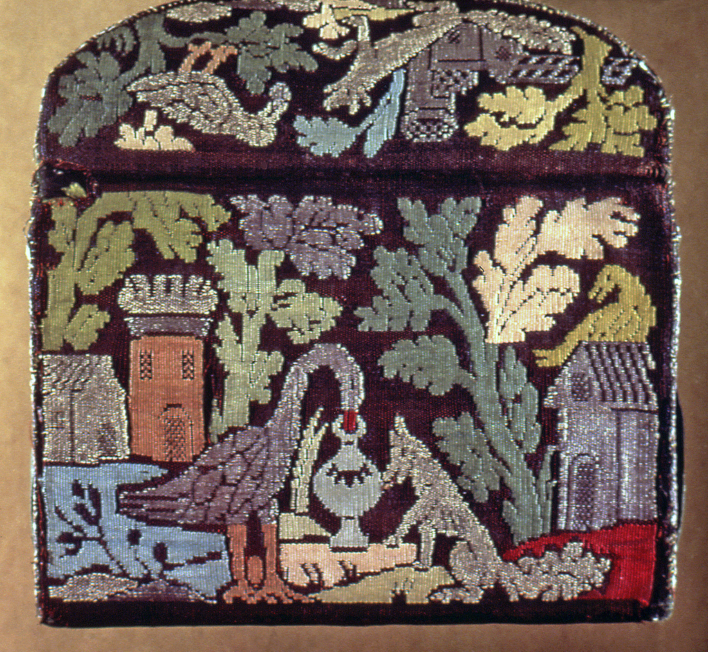 This is a Purse. It is dated 1640–1700 and we acquired it in 1962. Its medium is silk, gold-wrapped silk, horsehair (id: lab) and its technique is tapestry woven with continuous and discontinuous wefts. It is a part of the Textiles department.
