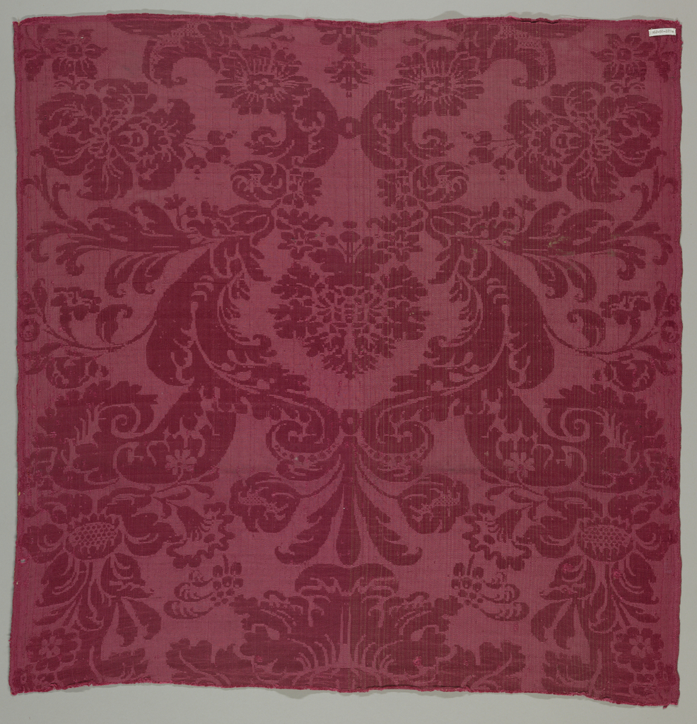 This is a Fragment. It is dated 17th–18th century and we acquired it in 1962. Its medium is 1902-1-304silk and its technique is 5-harness satin damask. It is a part of the Textiles department.