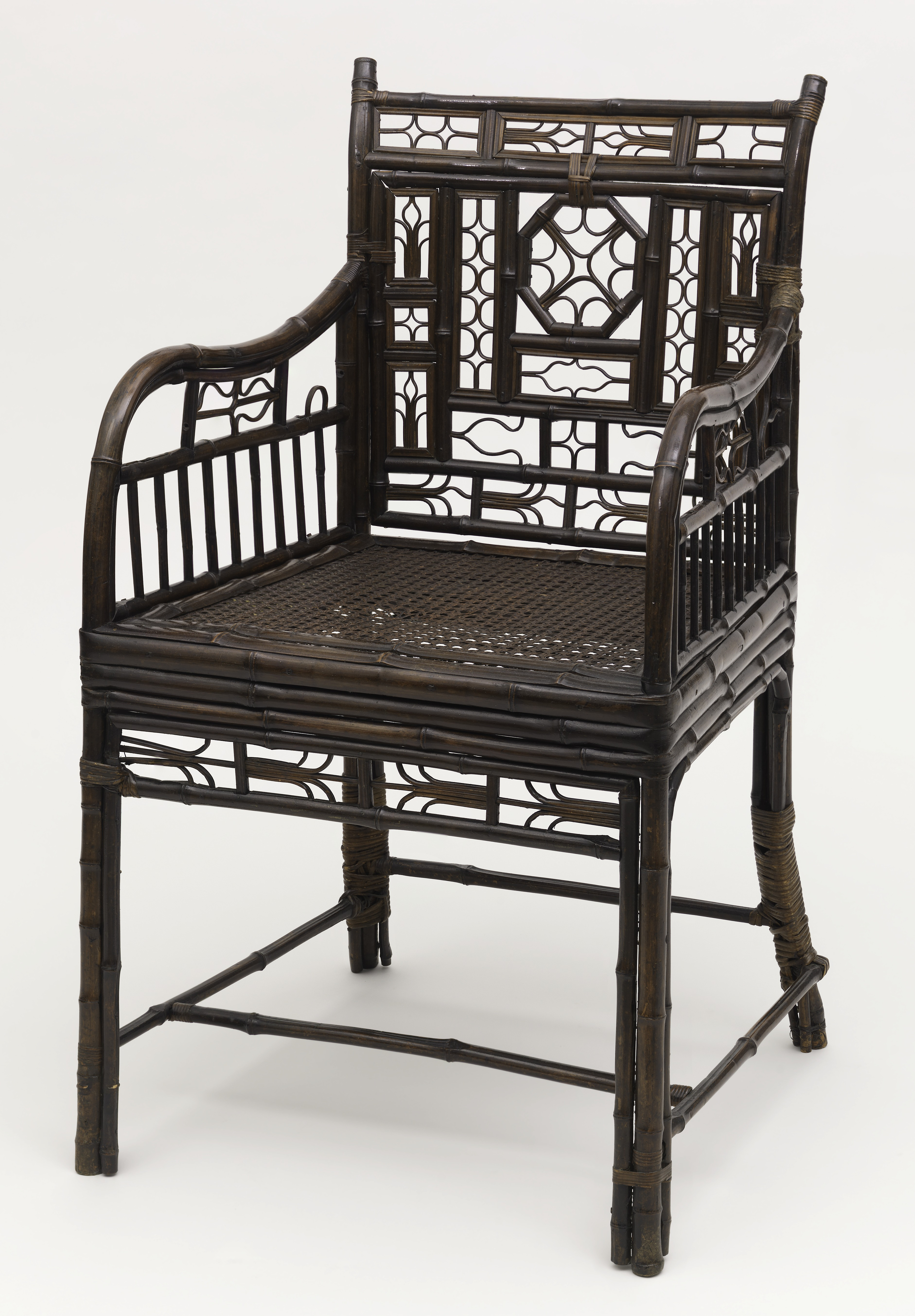 This is a Armchair. It is dated ca. 1815 and we acquired it in 1962. Its medium is bamboo, caning. It is a part of the Product Design and Decorative Arts department.