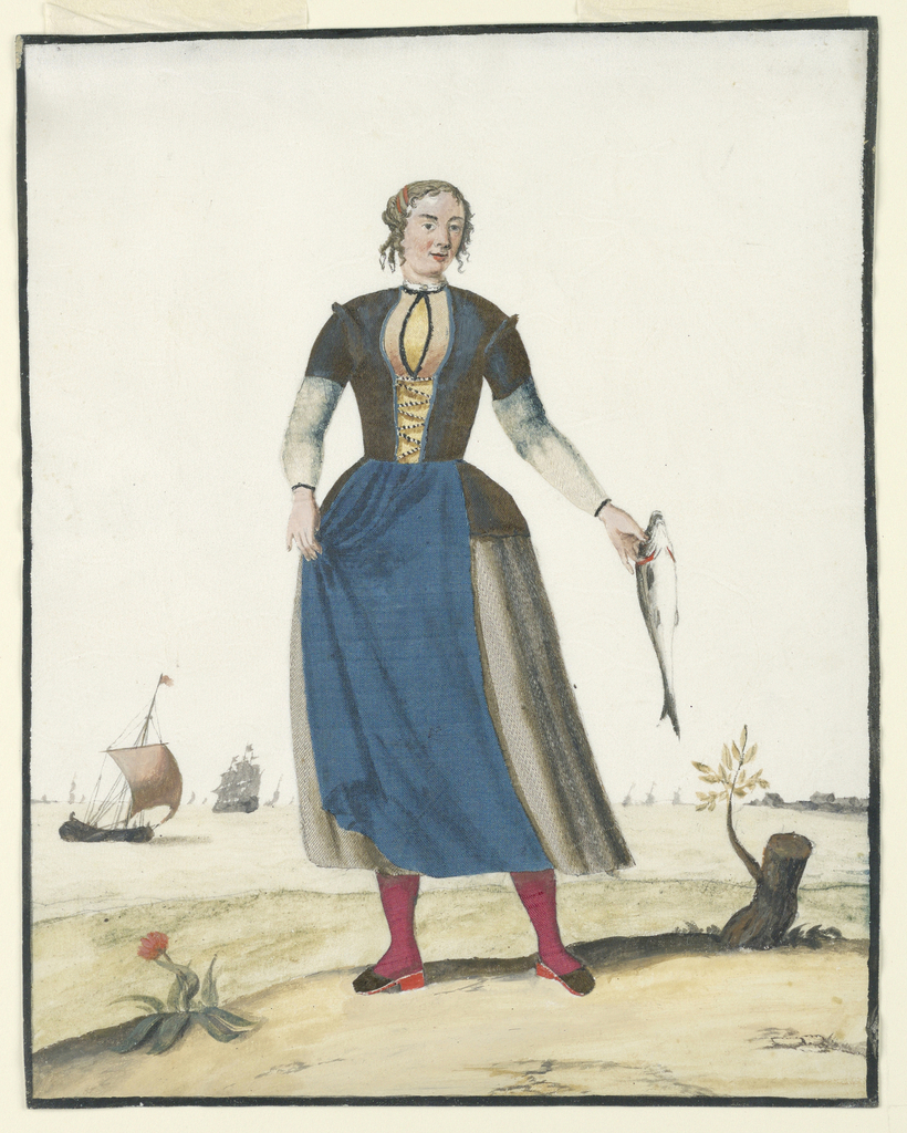 Decoupage, Fisherwoman with a Catch; Netherlands; graphite, brush and watercolor on vellum with various fabrics; 23.7 x 18.7 cm (9 5/16 x 7 3/8 in.); Gift of Elizabeth M. Riley; 1963-33-2