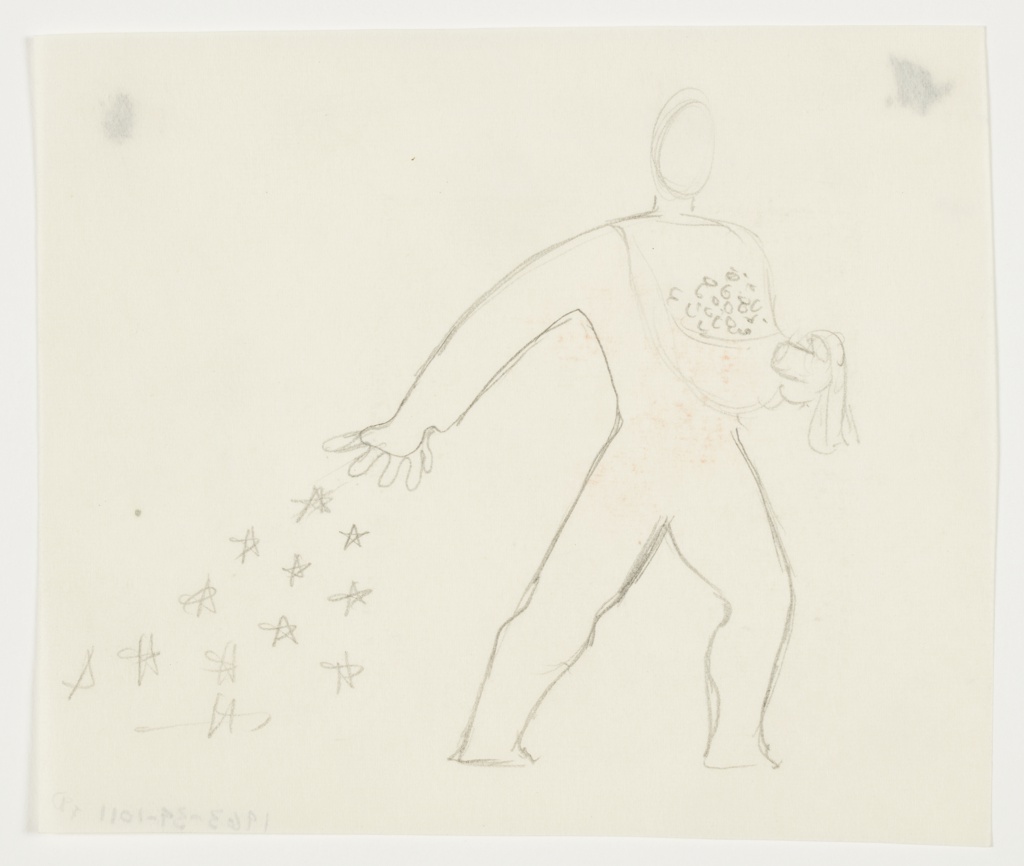 Drawing, Study of a Figure Scattering Stars; Designed by Edward McKnight Kauffer (American, active England, 1890–1954); USA; graphite on thin paper; 11.2 × 13.2 cm (4 7/16 × 5 3/16 in.); Gift of Mrs. E. McKnight Kauffer; 1963-39-1011