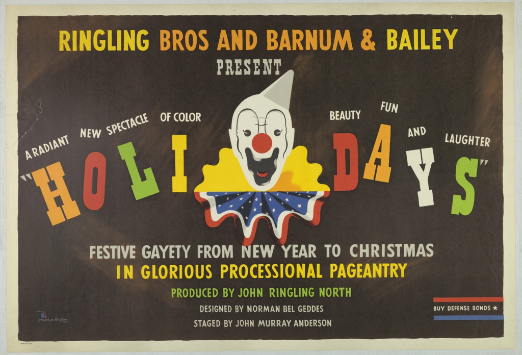 Poster, Holidays; Designed by Edward McKnight Kauffer (American, active England, 1890–1954); Client: Ringling Bros. and Barnum & Bailey; USA; lithograph on paper, lined; 71.1 × 104 cm (28 × 40 15/16 in.); Gift of Mrs. E. McKnight Kauffer; 1963-39-116-a