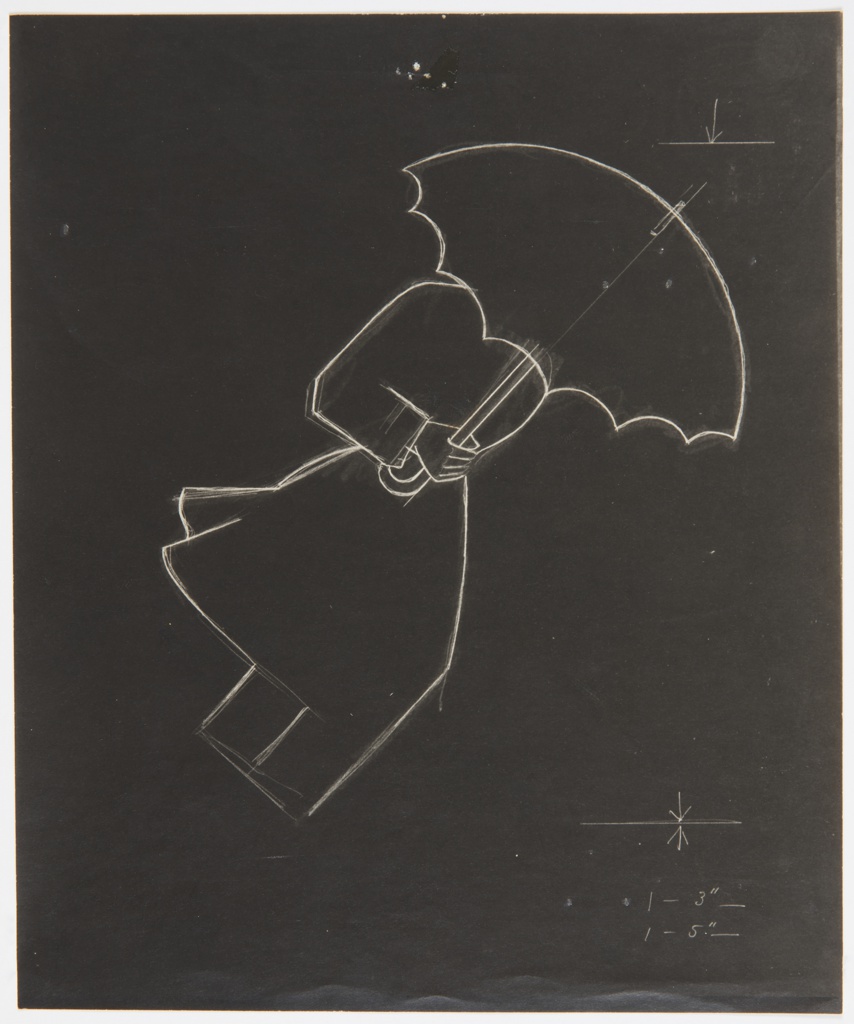 Photograph, Study of a Figure with Umbrella; Designed by Edward McKnight Kauffer (American, active England, 1890–1954); Client: Conoco Inc.; USA; photostat; 19 × 15.9 cm (7 1/2 × 6 1/4 in.); Gift of Mrs. E. McKnight Kauffer; 1963-39-1180