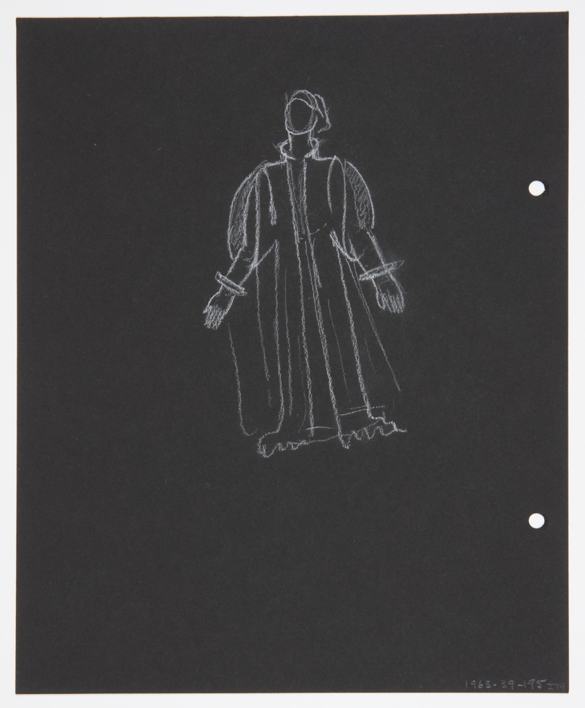 Drawing, Costume Design: Studies, for "Othello"; Designed by Edward McKnight Kauffer (American, active England, 1890–1954); Written by William Shakespeare (British, ca. 1564–1616); Produced by Ernest Milton (British, b. America, 1890–1974); USA; color crayon on black paper; 28 × 23.1 cm (11 in. × 9 1/8 in.); Gift of Mrs. E. McKnight Kauffer; 1963-39-195
