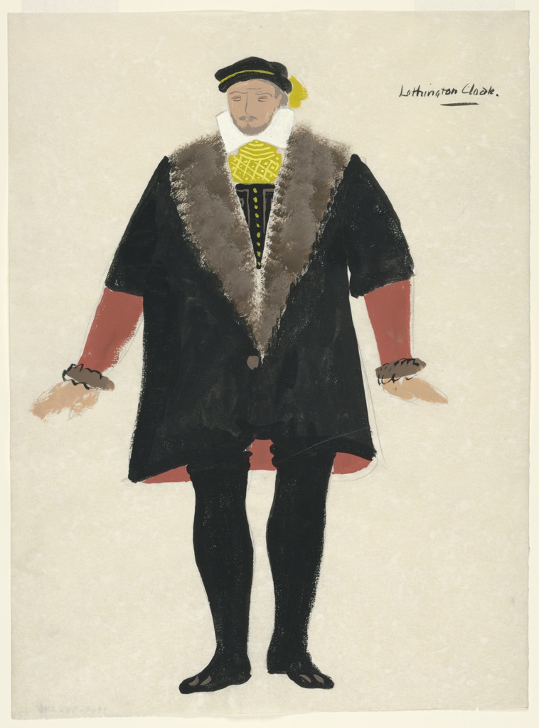 Drawing, Costume Design: Lethington, for "Queen of Scots"; Designed by Edward McKnight Kauffer (American, active England, 1890–1954); Production directed by Sir John Gielgud; USA; brush and gouache, graphite on parchment paper; 44 × 31.5 cm (17 5/16 × 12 3/8 in.); Gift of Mrs. E. McKnight Kauffer; 1963-39-246