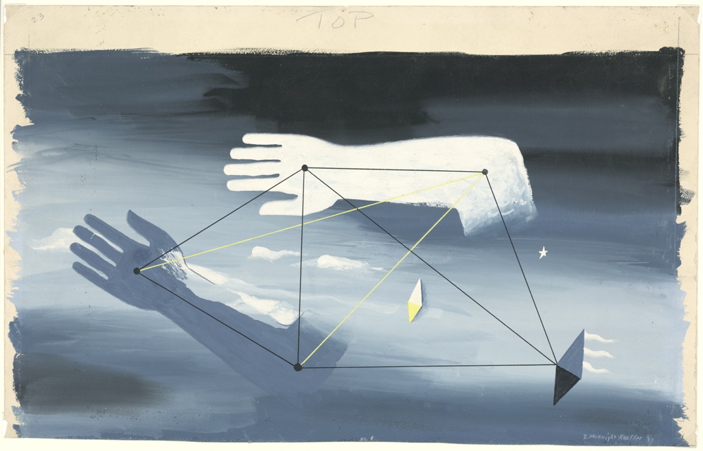 Signed in light blue gouache, lower right: E. McKnight Kauffer '47