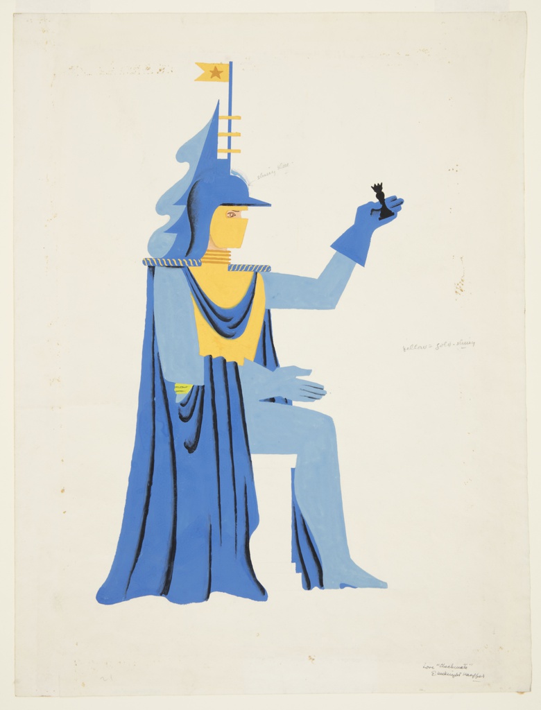 Drawing, Costume Design: Love, for "Checkmate"; Music composed by Arthur Bliss (British, 1891–1975); Designed by Edward McKnight Kauffer (American, active England, 1890–1954); Production directed by Ninette de Valois (Irish, 1898–2001); Client: The Royal Opera House; USA; brush and gouache, graphite on heavy white paper; 51 × 38.3 cm (20 1/16 × 15 1/16 in.); Gift of Mrs. E. McKnight Kauffer; 1963-39-274