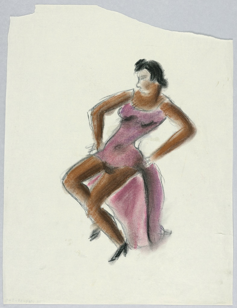 This is a Drawing. It was designed by E. McKnight Kauffer and written by Carl van Vechten and published by Alfred A. Knopf. It is dated 1930 and we acquired it in 1963. Its medium is black, brown, and purple crayon on paper. It is a part of the Drawings, Prints, and Graphic Design department.