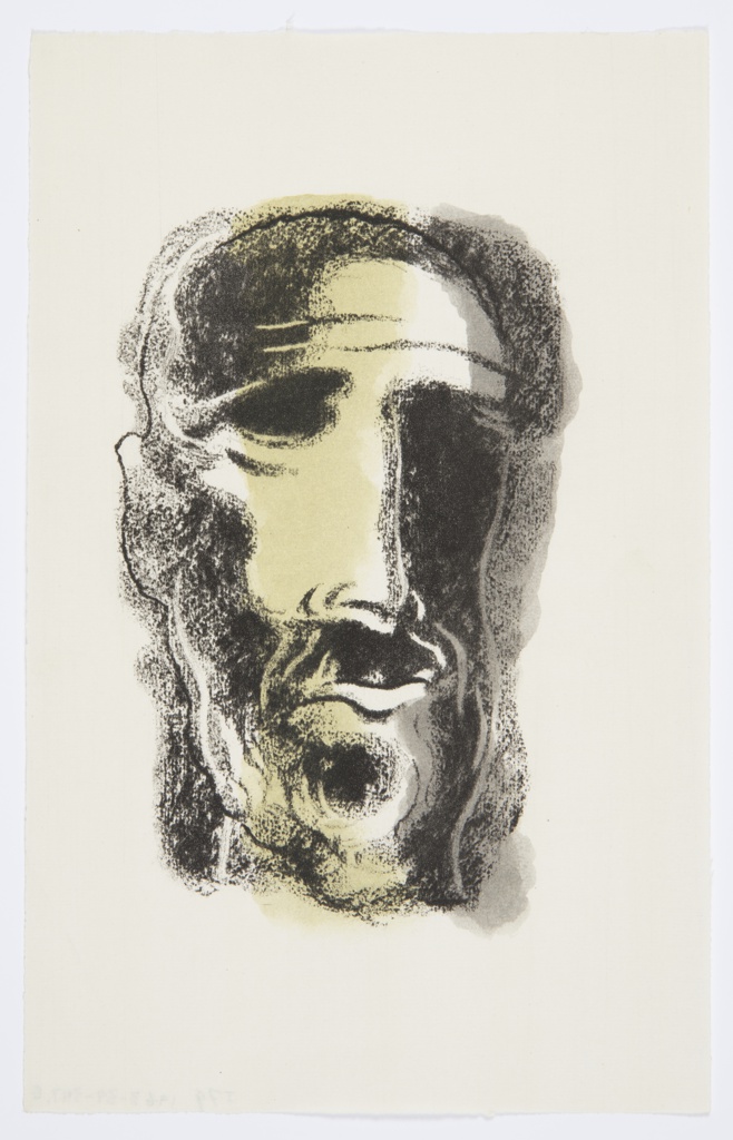 Print, Illustration for Don Quixote; Written by Miguel de Cervantes (Spanish, 1547–1616); Designed by Edward McKnight Kauffer (American, active England, 1890–1954); Printed by The Curwen Press (United Kingdom); Published by Nonesuch Press; USA; offset lithograph, hand-colored additions in brush and green and gray watercolor on paper; 22.9 × 14.2 cm (9 × 5 9/16 in.); Gift of Mrs. E. McKnight Kauffer; 1963-39-347-e