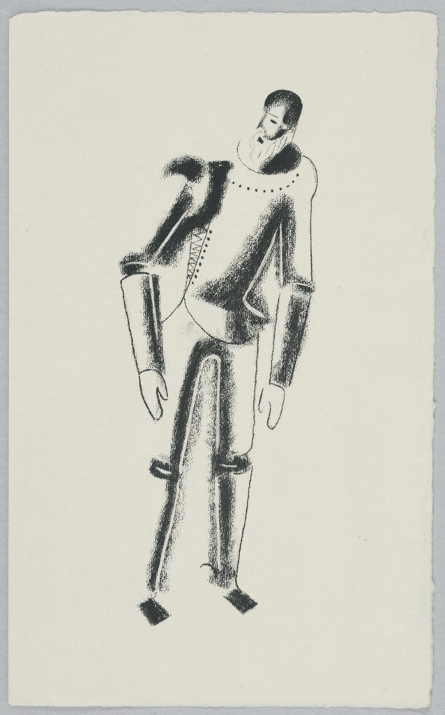 This is a Print. It was written by Miguel de Cervantes and designed by Edward McKnight Kauffer and published by Nonesuch Press and printed by The Curwen Press. It is dated 1930 and we acquired it in 1963. Its medium is offset lithograph on paper. It is a part of the Drawings, Prints, and Graphic Design department.